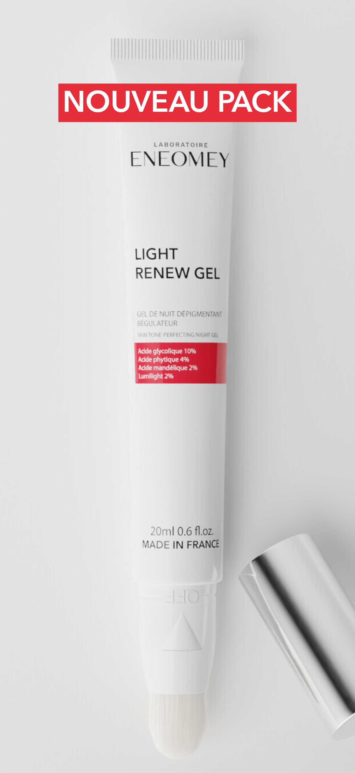 LIGHT RENEW GEL Gel de nuit dépigmentant régulateur Le gel de nuit dépigmentant régulateur LIGHT RENEW GEL homogénéise le teint et donne de l'éclat aux peaux sujettes aux taches pigmentaires. Prix 39,90 € Découvrir