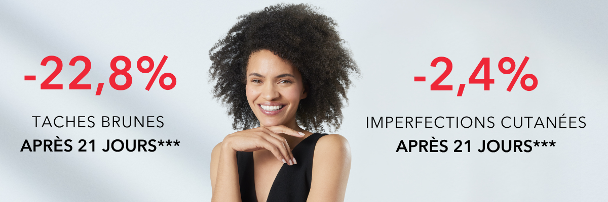 | Prévient les irrégularités pigmentaires | Éclaircit les taches | Homogénéise le teint